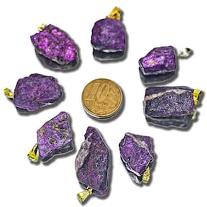 Pingente Pedrinha Purpurita Natural Montagem com Pino e Perinha Dourado na Pedra, origem garimpo com lapidação e montagem manual. A Purpurita é associada aos chacras da cabeça e favoreceria o pensamento liberado das obrigações materiais. Ela nos liberaria das preocupações que nos bloqueiam e favoreceria a tomada de consciência de nossas necessidades espirituais. Seria um revelador de nossas capacidades não exploradas elevando nosso nivel de consciência.
