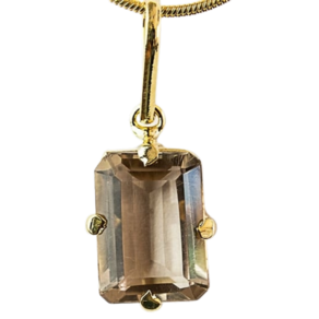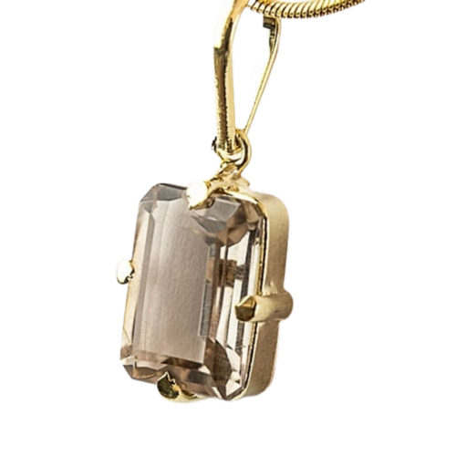 O quartzo fumê em formato baguette é o destaque deste colar. Adicione um toque de mistério e elegância ao seu look com este acessório.