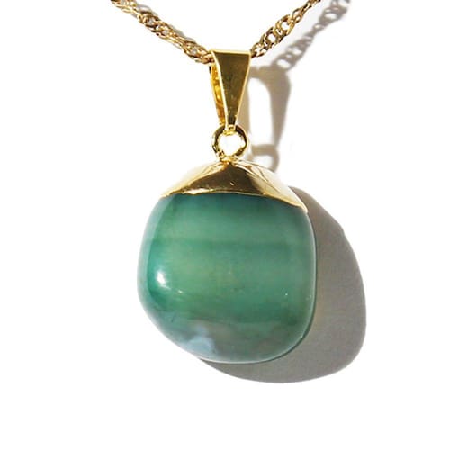 NOME DA PEDRA: Agata Verde COR DA PEDRA: Verde (Foto Ilustrativa) CORTE DA PEDRA: Rolado e polido CLARIDADE DA PEDRA: Denso brilhoso MEDIDA DA PEDRA: 15 a 20 Milimetros Aproximadamente (Varia de Acordo com Estoque) CASTOAÇÃO: Envolto com presilha dourado PESO TOTAL DA JOIA: 5 gramas aproximadamente (Varia de Acordo com Estoque)