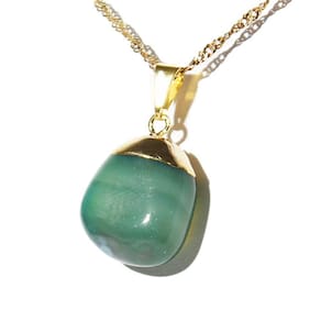 Colar pedra de Agata Verde envolto dourado. Acessório elegante e sofisticado que traz uma beleza naturalmente verde para o seu visual.