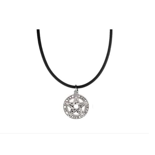 Colar Pentagrama Prateado Couro Sintético Pingente 25X20 Mm