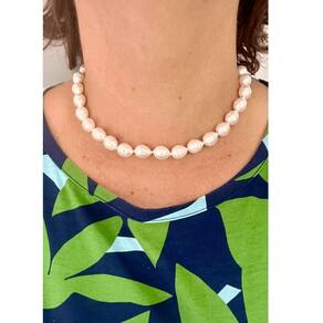 Este colar de pérolas barrocas ovais com fecho magnético tem seu charme! Você pode criar composições incríveis com outras semijoias de nossa Coleção Pérolas.