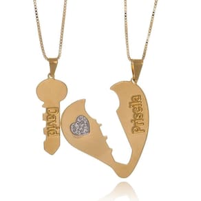 Personalize o nome de vocês na chave e no colar, para que mesmo quando estiverem longe possam se sentir próximos um do outro.