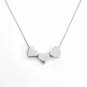 MODELO: Colar feminino de 3 Corações Passantes banhado com 100 milésimos de prata 925.