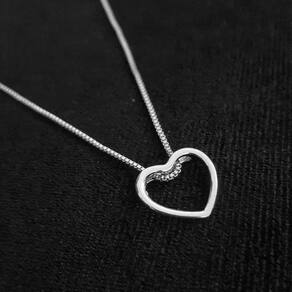 MODELO: Colar feminino com Coração Vazado banhado com 100 milésimos de prata 925.