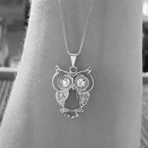 MODELO: Colar Feminino de Coruja banhado com 100 milésimos de prata 925.