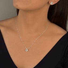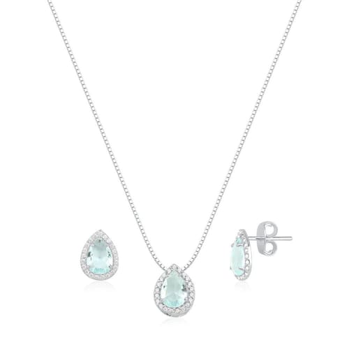 Confira as características desse Colar em Prata: Tamanho da Corrente:45cm Largura: 0.5mm Peso Total: 2.9 gramas Material: Prata 925 Forma: Maciça Fecho: BoiaTamanho do pingente: 8mm Tamanho do brinco: 8mm Tamanho da pedra: 7mm
