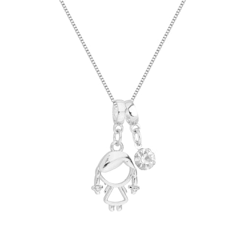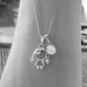 Colar Pingente Menina e Ponto de Luz Banhado a Prata 925 - COLAR: 60 cm