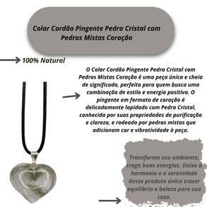 Colar Pingente Pedra Cristal com Pedras Mistas Coração Colar Cordão Pingente Pedra Cristal com Pedras Mistas Coração