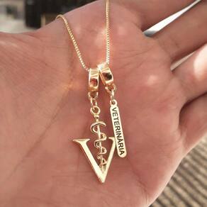 MODELO: Colar feminino de Profissão Veterinária banhado com 7 milésimos ouro 18k.