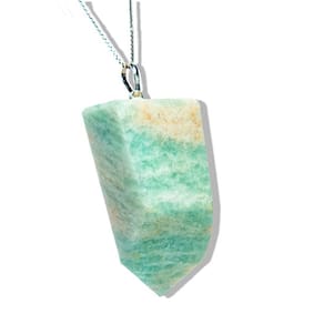 Colar de prata com pontinha de AMAZONITA verde, uma pedra de equilíbrio e harmonia. Adicione um toque elegante e sereno ao seu estilo.