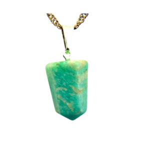 Pingente PONTA de Amazonita pedra de garimpo com lapidação artesanal montado no dourado , ideal para colar e pulseiras, ja vai montado.