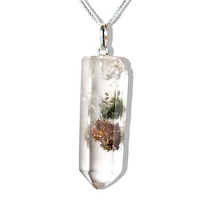 DETALHES DAS PEDRAS:NOME DAS PEDRAS: Cristal Quartzo NaturalCOR DAS PEDRAS: Cristalino Foto Ilustrativa CORTE DAS PEDRAS: Natural Sextavado Gerador CLARIDADE DAS PEDRAS: BrilhosoMEDIDA DAS PEDRAS: 25 x 10 Milimetros Pequena Variação Pra + ou -CASTOAÇÃO : Pino Preso Sob Furo + Perinha para Corrente em metal Montagem PrateadoPESO TOTAL DA JOIA: 20 Quilates Com Variação pra + ou - Desperte a Magia com o Colar Pontinha Pedra Cristal Quartzo Presilha e Pino Prateado!
