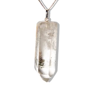 Beleza que Resplandece: Deixe a luz do cristal quartzo iluminar sua jornada espiritual. A beleza natural da pedra, combinada com o design elegante, faz deste colar uma expressão tangível da sua busca por significado e transcendência.