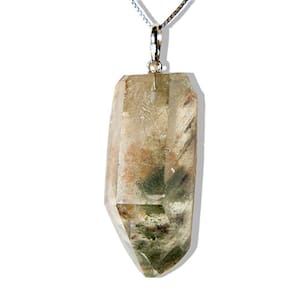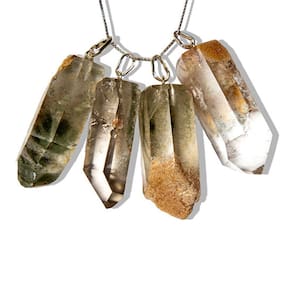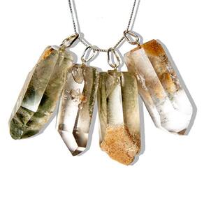 NOME DAS PEDRAS: Cristal Quartzo Natural com Inclusão de Clorita e Lodolita Verde. COR DAS PEDRAS: Cristalino (Foto Ilustrativa). CORTE DAS PEDRAS: Natural Sextavado Gerador, mantendo caracteristicas presentes na peça, mantendo sua originalidade. CLARIDADE DAS PEDRAS: Brilhoso. MEDIDA DAS PEDRAS: 20 a 30mm, podendo ter pequenas variações. CASTOAÇÃO: Pino Preso Sob Furo + Perinha para Corrente em metal, Montagem Prata 950. PESO TOTAL DA JOIA: 20 Quilates com variação para mais ou menos.