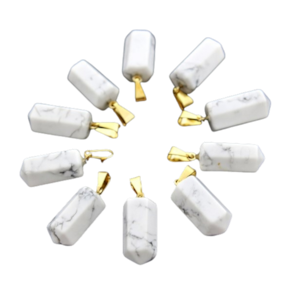 Pingente PONTINHA de Howlita Branca pedra de garimpo com lapidação artesanal montado com pino e presilha em dourado, ideal para colar e pulseiras, ja vai montado.
