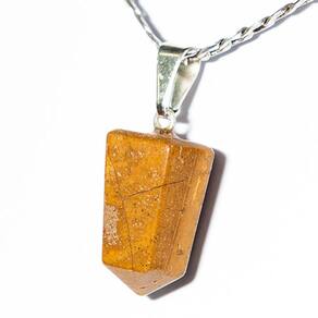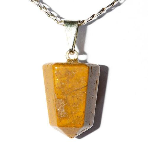 Pingente Pontinha Pedra Jaspe Amarelo Presilha e Pino Prateado, Pontinha Sextavada Pedra Cristal de garimpo com lapidação artesanal montado com pino e Presilha em Prateado, ideal para colar e pulseiras, ja vai montado