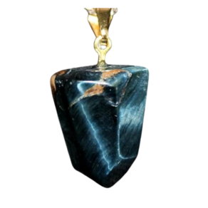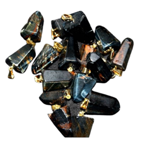 Pingente PONTA de Olho de Falcão pedra de garimpo com lapidação artesanal montado no dourado , ideal para colar e pulseiras, ja vai montado.