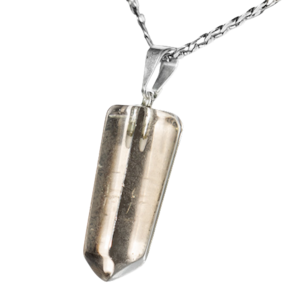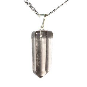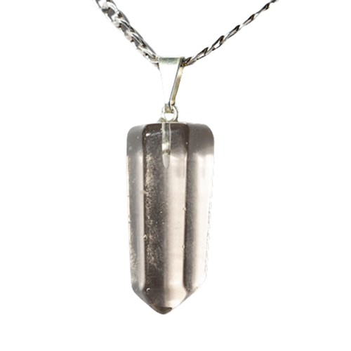 Pingente Pontinha Pedra Quartzo Fumê Presilha e Pino Prateado, Pontinha Sextavada Pedra Cristal de garimpo com lapidação artesanal montado com pino e Presilha em Prateado, ideal para colar e pulseiras, ja vai montado.