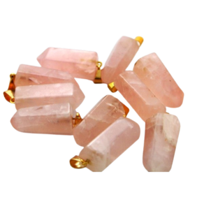 Pingente PONTA de Quartzo Rosa pedra de garimpo com lapidação artesanal montado no dourado , ideal para colar e pulseiras, ja vai montado.
