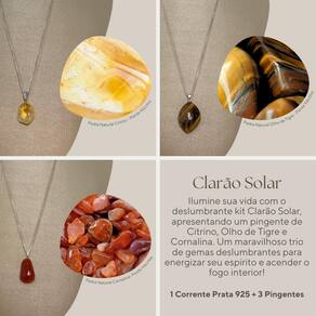 Clarão Solar é uma celebração da energia solar em todas as suas formas, desde a vivacidade do meio-dia até a tranquilidade do pôr do sol, com cada pedra trazendo um aspecto diferente da força e da beleza do sol.