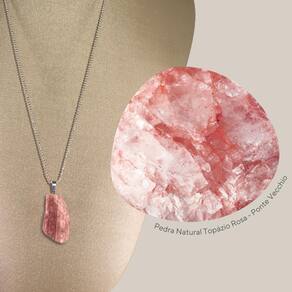 Colar Prata 925 Diamantado Turmalina Rosa Bruta - P. Vecchio