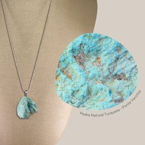 A Turquesa, com seu azul vibrante e veios naturais, é valorizada por suas propriedades de cura e equilíbrio. Esta pedra antiga promove bem-estar e harmonia, destacando-se em qualquer joia.