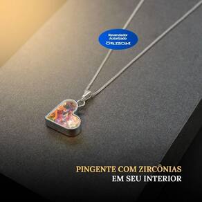 Colar prata feminino aço inox pingente zirconias coração moda delicado estiloso Qualidade premium Colar Coração em Prata com Zircônias - Elegância em Cada Detalhe
