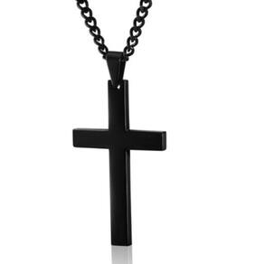 Colar preto fosco cruz corrente aço inoxidável e1102