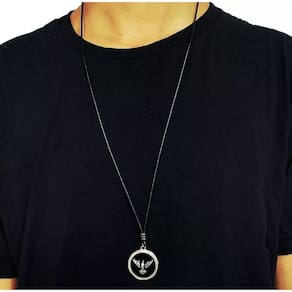 Cordão com pingente em aço super estiloso!!!Super resistente com material de qualidade.Ajustável no pescoço longo ou curtoDesign bem trabalhado que deixa sua marca por onde passarCordão do tipo encerado fio couro Black preto .