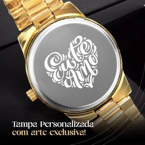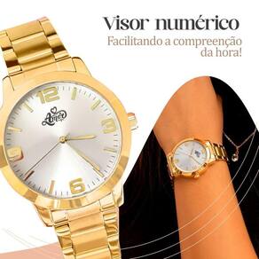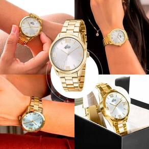 Colar + Relogio Feminino Aço Dourado + Pulseira + Caixa Strass Edição Limitada Social Inoxidavel