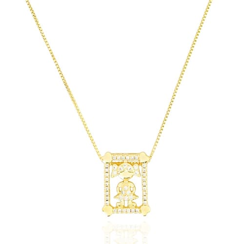 Cód CL1621 Dados técnicos: Semijóia banhada a ouro Comprimento: 45cm mais 5cm de extensor Tamanho do pingente: 1,5cm x 1,2cm Marca: Lys Lazuli Garantia: 2 anos (Esta garantia cobre apenas o banho. Quebra, amassado, arranhado ou mau uso não estão cobertos por esta garantia) Peça antialérgica Classe da peça: Semijoia