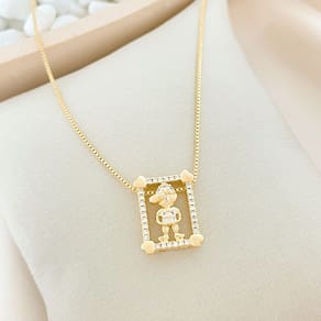 Cód CL1619 Dados técnicos: Semijóia banhada a ouro Comprimento: 45cm mais 5cm de extensor Tamanho do pingente: 1,5cm x 1,2cm Marca: Lys Lazuli Garantia: 2 anos (Esta garantia cobre apenas o banho. Quebra, amassado, arranhado ou mau uso não estão cobertos por esta garantia) Peça antialérgica Classe da peça: Semijoia