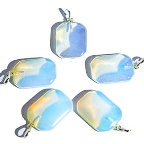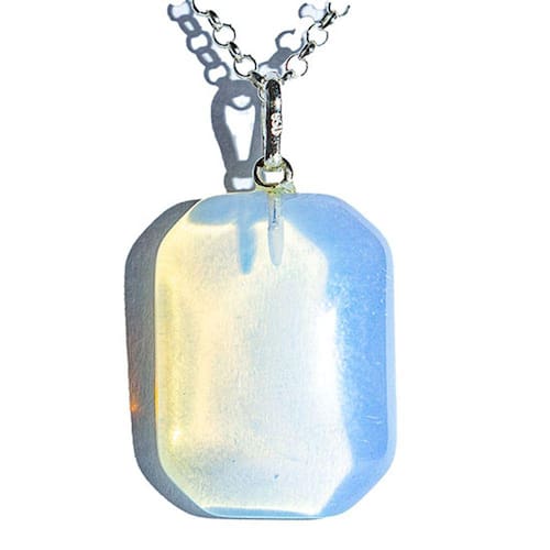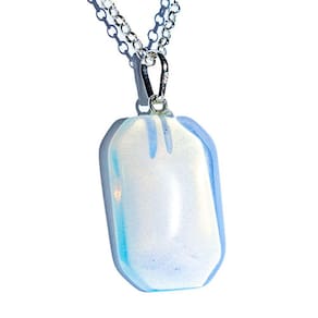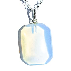 Pingente Retângulo com quinas facetadas Pedra da Lua Opalina com montagem pino em Prata 950. Conhecido por sua conexão com a energia lunar.