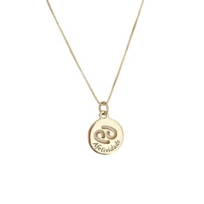 De um lado da medalha vem gravado por escrito o signo e a pedrinha colada com uma cola