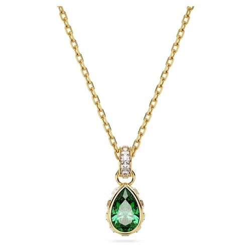 Swarovski Colar e brincos Stilla Coleção de joias de cristal, cortes de cristal mistos, acabamentos de metal variados, Cristal, Cristal - Medidas: comprimento mínimo 36 cm, comprimento máximo 40 cm - Divertido e elegante: como uma gota de luz, este pingente brilha com uma beleza poderosa, apresentando uma pedra central verde cortada em uma configuração dourada com acabamento dourado, embelezado com cristais quadrados transparentes - Estilo exclusivo: um detalhe de cristal redondo e transparente pendurado em uma corrente com acabamento dourado adiciona um alongamento extra de 5 cm, para um toque adicional de brilho e glamour - Complete seu visual: estilize este colar com outras peças da família Chroma para um visual delicado e elegante, ou dê como um presente romântico para aquela pessoa especial em sua vida - Projetado para durar: as joias Swarovski mantêm seu brilho quando práticas simples de cuidado são observadas; remova antes de entrar em contato com água, loções ou perfumes e polir com um pano sem fiapos - Itens entregues: (1) Colar com pingente Swarovski Chroma com cristal central verde cortado em pera e enfeite de cristal transparente em uma corrente com acabamento dourado, completo com caixa de colar Swarovski