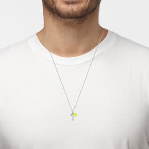 Nossa Collection Tennis VL accessoires, Reflete todo Cuidado e Atenção que temos ao elaborar nossas peças. Apresentamos o Colar Tennis e Bolinha da Sorte Revestido em Ródio, inspirado no jogo de Tennis. O Conjunto banhado a Ródio traz um Ponto de Luz que Brilha sutilmente. Uma lembrança Atemporal que defende uma Estética Unissex Ultramoderna.