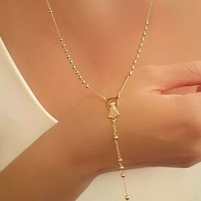 Detalhes Do Produto Corrente - No formato do terço de 60 cm + 5 cm de extensor de corações Pingente - Uma Nossa Senhora Aparecida e uma Cruz Material - Semijoia com banho de ouro 18k Acompanha - Bolsinha de veludo com botão personalizada para guardar sua semijoia