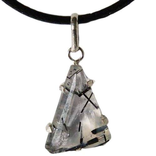 Colar triângulo turmalina preta incrustada no cristal com garra na prata: deslumbrante peça que adiciona brilho e elegância a qualquer roupa.