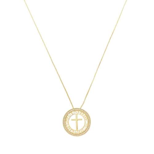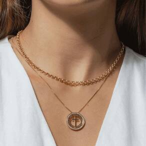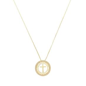 Seu design sofisticado e atemporal une espiritualidade e beleza em uma semijoia que pode ser usada em qualquer ocasião, do dia a dia a momentos especiais. O banho em ouro 18k confere à este colar feminino um brilho intenso e duradouro, garantindo que a semijoia permaneça linda por muito mais tempo.