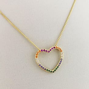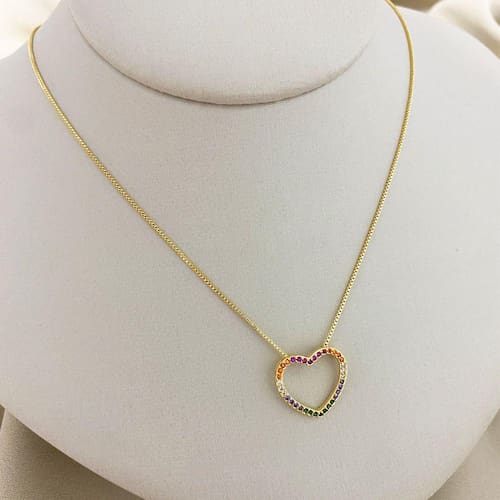 Colar Veneziana com Pingente de Coração em Pedras de Zircônia Colorida Banhado a Ouro