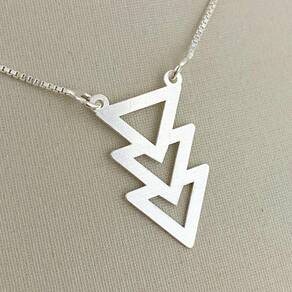 Colar Veneziana Pingente Triângulo Geométrico em Prata 925