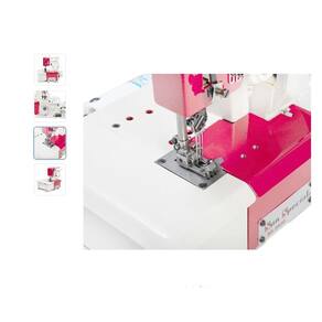 Indicada para fazer acabamentos em camisetas, lingerie, cuecas, viés(debrum) e rebatimento de elásticos.