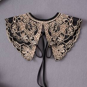 Gola falsa, gola removível, camiseta preta bordada meio falsa, gola de blusa, gola sintética vintage de renda floral, ombro nublado para mulheres e meninas, elegante estilo xale para suéter. Material: Outro tamanho: Nenhum Peso: Nenhum