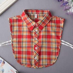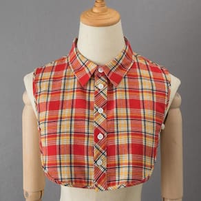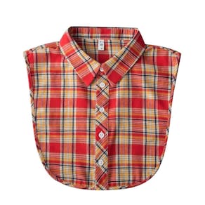 Gola falsa, gola removível, camisa xadrez vermelha amarela, gola de blusa, camisa meio falsa de algodão com botão frontal, elegante gola sintética xadrez para mulheres e meninas, acessório casual de camadas para suéteres e jaquetas Material: Outro tamanho: 35 × 32 × 40 cm Peso: Nenhum