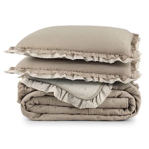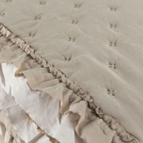 Charme dos Babadinhos: O grande diferencial desta colcha são seus babadinhos delicados, que contornam a peça e os porta travesseiros, adicionando um charme único e um visual encantador à cama.