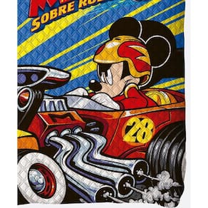A Colcha Bouti Mickey da Lepper, une as incríveis aventuras do personagem piloto com a emoção do mundo das corridas. Ela possui toque acetinado e é dupla face, além de ser fácil de lavar, secar com rapidez e decorar de forma prática e acessível. Tornando o quarto dos pequenos, junto de seus personagens favoritos, mais colorido e divertido.