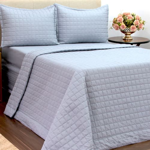 Tamanho: Cobre-leito: 2,80m x 2,40m | Portas-travesseiros: 70cm x 50cm - Ideal para camas queen size, proporcionando cobertura completa e sofisticação. Tecido: Superior e inferior: 100% poliéster - Macio, leve e resistente, garantindo durabilidade e fácil manutenção. Manta: 100% poliéster - Proporciona isolamento térmico, mantendo a temperatura ideal durante o sono. Design: Quiltado com matelassê sofisticado, adicionando um toque de elegância ao seu quarto. Fácil de cuidar: Lavável em máquina, prático e durável.