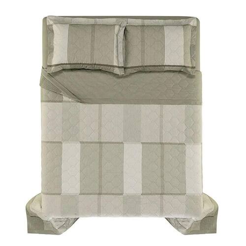 Colcha Casal 200 Fios Algodão Miguel Karsten O Kit Colcha Casal Karsten Miguel é produzido em 100% algodão percal 200 fios, oferecendo um toque suave e confortável para suas noites de descanso. Sua qualidade excepcional garante durabilidade e maciez, tornando o conjunto ideal para quem valoriza conforto e sofisticação no dia a dia. Com uma estampa de listras finas em branco e um fundo em tons de verde, a colcha traz uma proposta visual moderna e leve, perfeita para criar um ambiente tranquilo e acolhedor. Seu design dupla face oferece ainda mais versatilidade, permitindo alternar entre os dois lados da colcha para renovar o visual do quarto conforme seu estilo e as estações do ano. O acabamento em thermobond e os cantos quadrados garantem que a colcha se mantenha estruturada e alinhada, preservando sempre uma aparência impecável. O porta-travesseiro, com suas três abas de 5cm, complementa o conjunto, oferecendo um acabamento sofisticado e valorizando ainda mais a decoração da cama. Com uma combinação de design moderno e conforto incomparável, o Kit Colcha Casal Karsten Miguel transforma o quarto em um espaço de aconchego e estilo. Perfeito para quem busca renovar o ambiente com elegância, esse conjunto alia praticidade e beleza em cada detalhe, proporcionando noites ainda mais agradáveis. CONTEÚDO DA EMBALAGEM 1 x Colcha 220cm x 260cm 2 x Porta Travesseiro com abas 50cm x 70cm Marca: Karsten de Fábrica Imagens meramente ilustrativas, acessórios não acompanham o produto. Pode haver pequena variação de cor, de acordo com a configuração e modelo do monitor ou do aparelho celular. Consultar a cor nas especificações técnicas do produto. Instruções de Lavagem: Lavação a 60ºC; Proibido alvejar; Secar em tambor com temperatura maxima de 60ºC; Ferro de passar com temperatura maxima de 150ºC; Proibido lavar a seco; Quem somos: A Belladomi é uma loja estabelecida desde 2013, especializada em oferecer uma ampla variedade de produtos para melhorar o conforto e a acolhida de lares. Com um compromisso firme com a qualidade, cada item selecionado reflete esse padrão elevado. Trabalhando com marcas reconhecidas, a Belladomi assegura excelência em todas as peças, mantendo preços competitivos na região. Sua equipe se destaca pelo atendimento diferenciado, disponível para auxiliar em todas as etapas da compra, garantindo uma experiência satisfatória para o cliente. Seu objetivo é contribuir para a tornar as casas mais aconchegantes e elegantes, oferecendo produtos de alta qualidade a preços justos. Marca: Não Informado Ean: 7909156299289