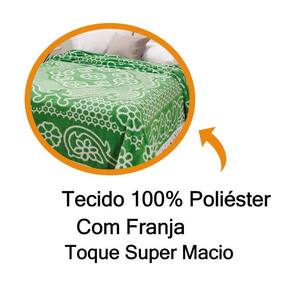 A nova colcha de chenille foi desenvolvida em poliéster o que resulta em um produto que não solta pêlo, não alérgico e um toque super macio.Bastante versáteis, as colchas de chenille ajudam a criar uma atmosfera sofisticada para o ambiente.Inovação, qualidade e tradição em cobertores, tapetes, cortinas, colchas, edredons e mantas. Empresa líder no brasil com mais de 50 anos presente em milhares de lares brasileirosColcha casal chenille jolitex com franjas 220x240 Marca: jolitex Modelo: bruna Cor: verde Medidas: 2,20m x 2,40m .